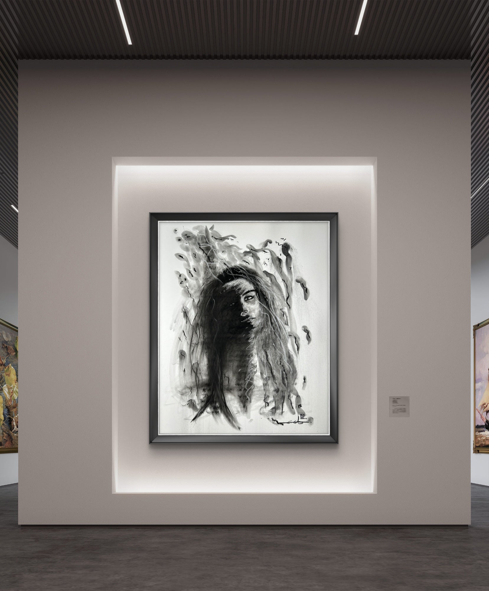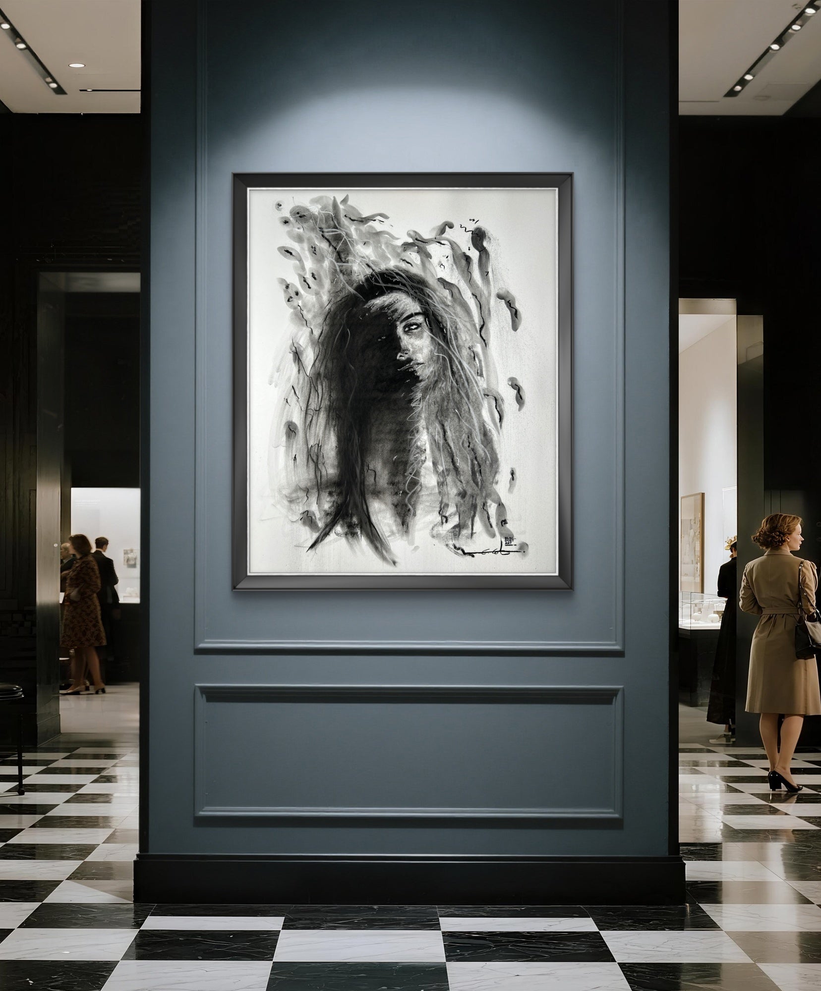 Her form emerges from layered charcoal textures, echoing moonlight breaking through shadow. Just as the moon influences tides, Selene embodies the magnetic pull of inner strength, a reminder that even in darkness, a woman holds the power to illuminate her own path.