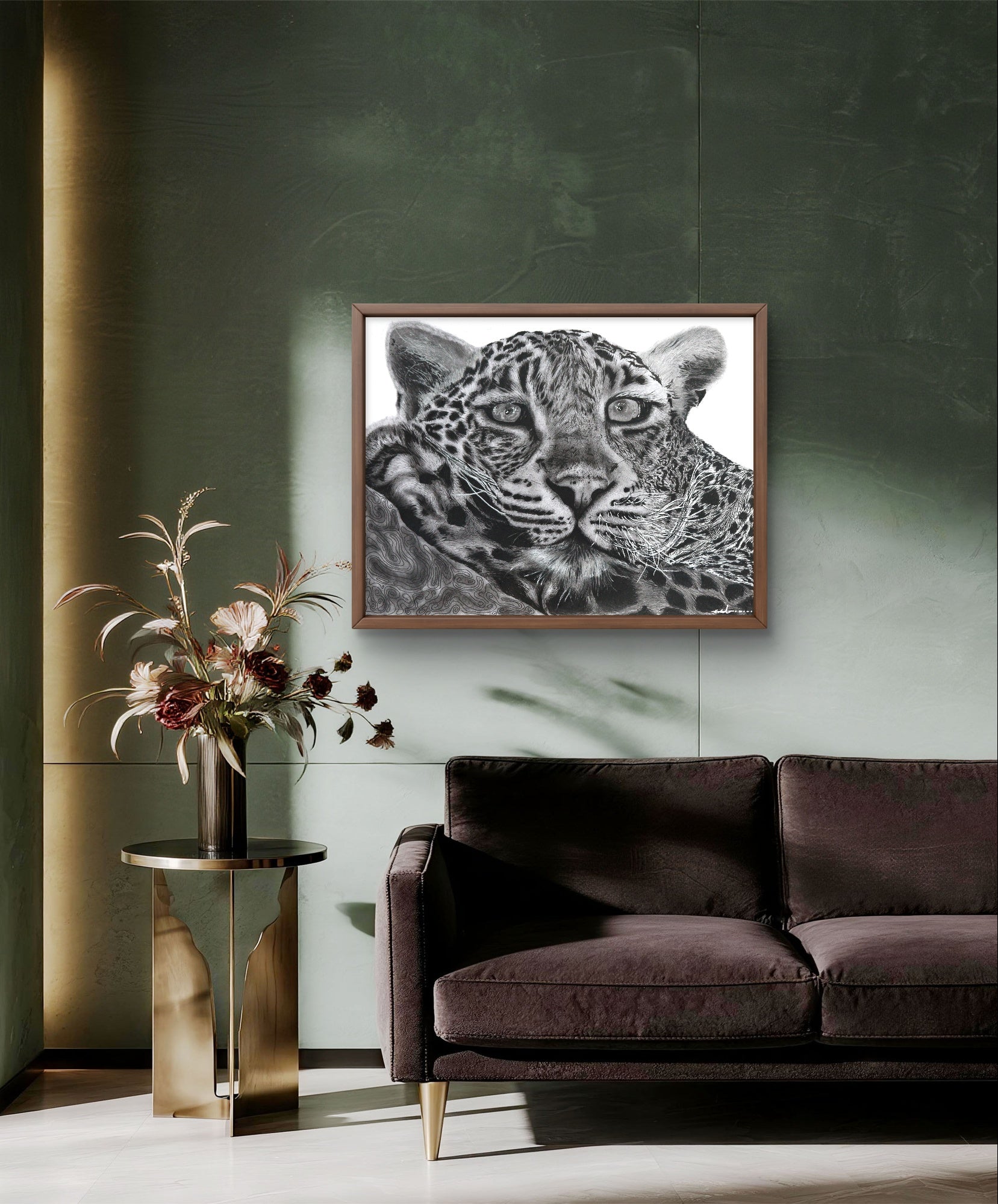 This artwork is more than a study of a predator; it is a meditation on life itself. The leopard, watchful yet at ease, reminds us to slow down, observe, and fully experience the present moment. Just as he surrenders to the rhythm of the jungle, we too can find peace in stillness, clarity in observation, and meaning in presence.